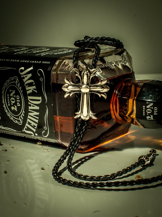 A Cross To Bare - Cowhide Rope Necklace