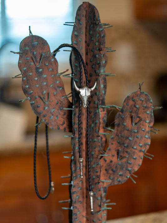 Silver Steer Bolo - Cowhide Rope Necklace
